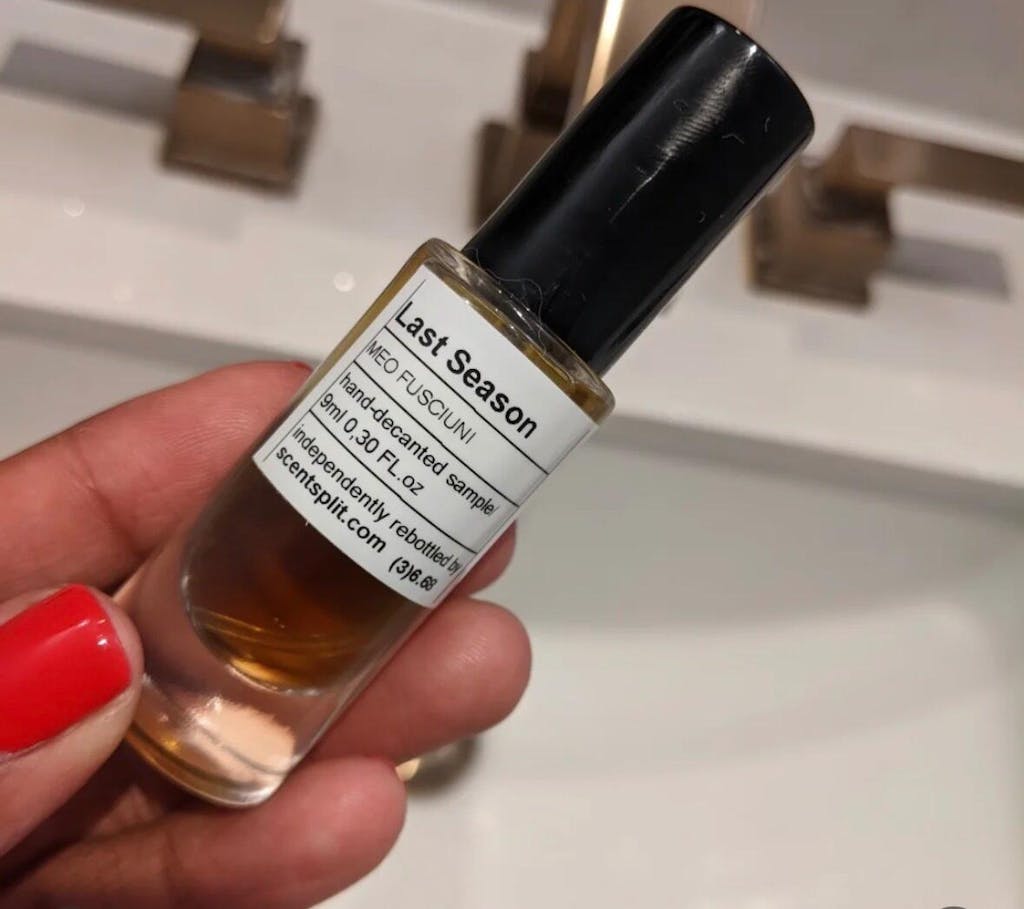 Our Meo Fusciuni Last Season samples and decants are rebottled by Scent Split from genuine fragrance bottles. Scent Split is a wholly independent entity not affiliated, connected, or associated with Meo Fusciuni. |